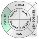 Remarque : Utilisez l'outil Centre pour recentrer le modèle dans la vue courante, si vous utilisez un des disques de navigation complète ou de visionnage d'un objet.