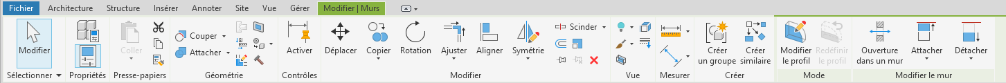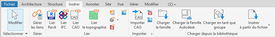 Le ruban s'affiche dès que vous créez ou ouvrez un fichier. Il contient tous les outils nécessaires à la création d'un projet ou d'une famille.