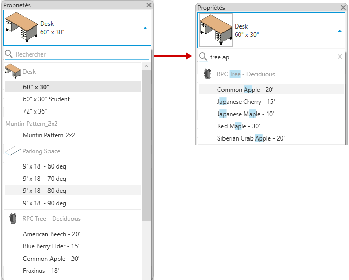 Revit LT pour faciliter la sélection à partir d’une longue liste d’options. Vous pouvez effectuer une recherche dans les zones fonctionnelles suivantes :