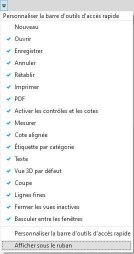 Il est possible d'afficher la barre d'outils d'accès rapide au-dessus ou en dessous du ruban. Pour modifier ce paramètre, sur la barre d'outils d'accès rapide, cliquez sur la liste déroulante Personnaliser la barre d'outils d'accès rapide