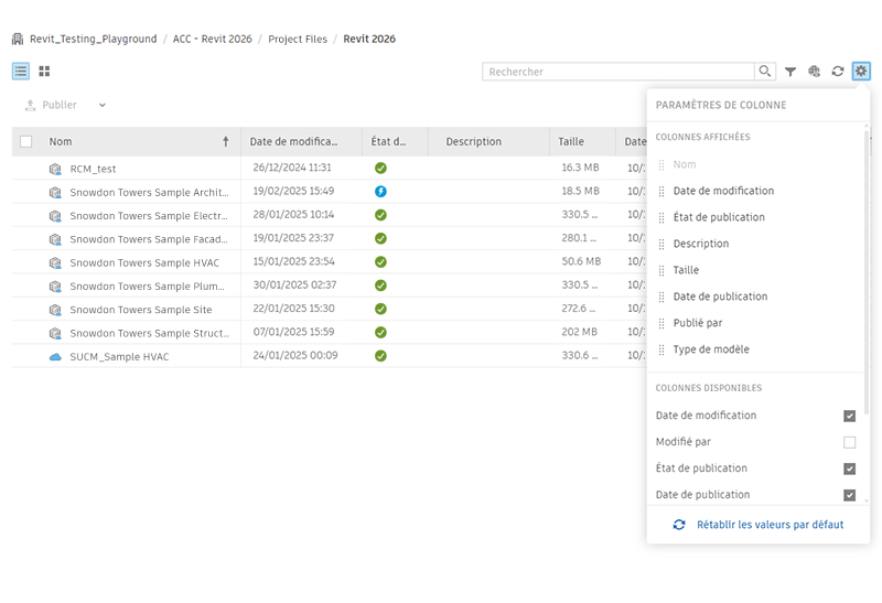 Remarque : Elle n’affiche pas les gabarits de projets ni les bibliothèques de composants dans les hubs Autodesk Account.