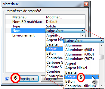 5. Das le menu Nom, sélectionnez Brique.