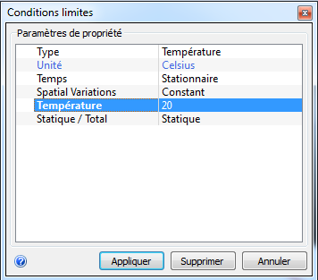 Ouvrez la boîte de dialogue d'édition rapide Conditions limites en appliquant l'UNE des méthodes suivantes :