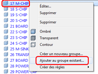 Cliquez avec le bouton droit sur l'autre composant PUCE M de la liste et choisissez Ajouter au groupe existant.