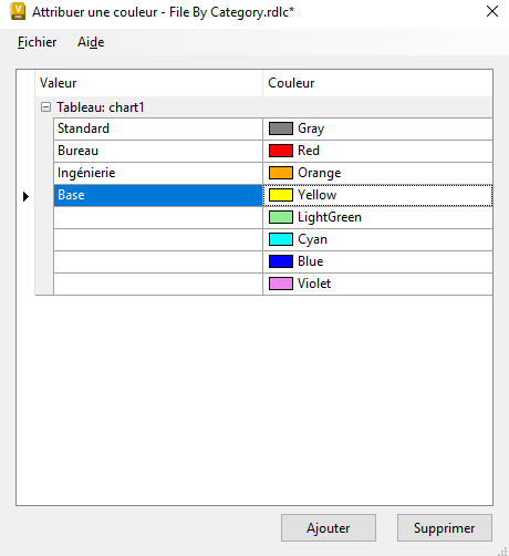 La fonction de gestion de rapport permet à l’administrateur d’attribuer des couleurs aux valeurs du gabarit des rapports de mappage de données.