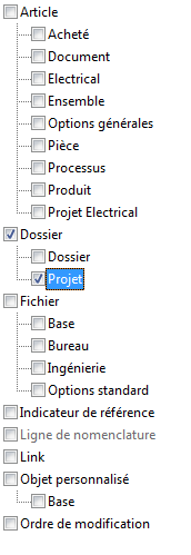 Fichier | Utilisez l'association de fichier pour créer une propriété de fichier personnalisée. La propriété personnalisée peut être limitée à un type de catégorie de fichier donné, par exemple Base ou Ingénierie. |