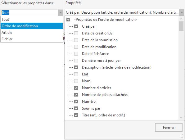 Dans la liste déroulante Propriété, cochez la case des propriétés que vous souhaitez répertorier dans le corps de l’e-mail, puis cliquez sur Fermer. Les propriétés sélectionnées sont répertoriées dans la section Inclure les propriétés sélectionnées.