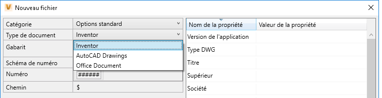 Lorsqu’un utilisateur sélectionne une option dans la liste des types de documents et clique sur OK, la fonction Nouveau fichier Data Standard recherche un gabarit dans le dossier Vault associé à ce type de document. Le gabarit est utilisé pour générer le nouveau fichier.