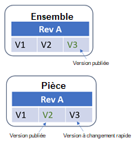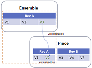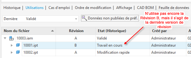 Prenons un exemple simple : un assemblage qui est en révision A et une pièce qui est en révision B.