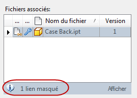 Tous les liens secondaires sont masqués. Le nombre de liens masqués s'affiche dans la partie inférieure gauche de la fenêtre Fichiers associés.