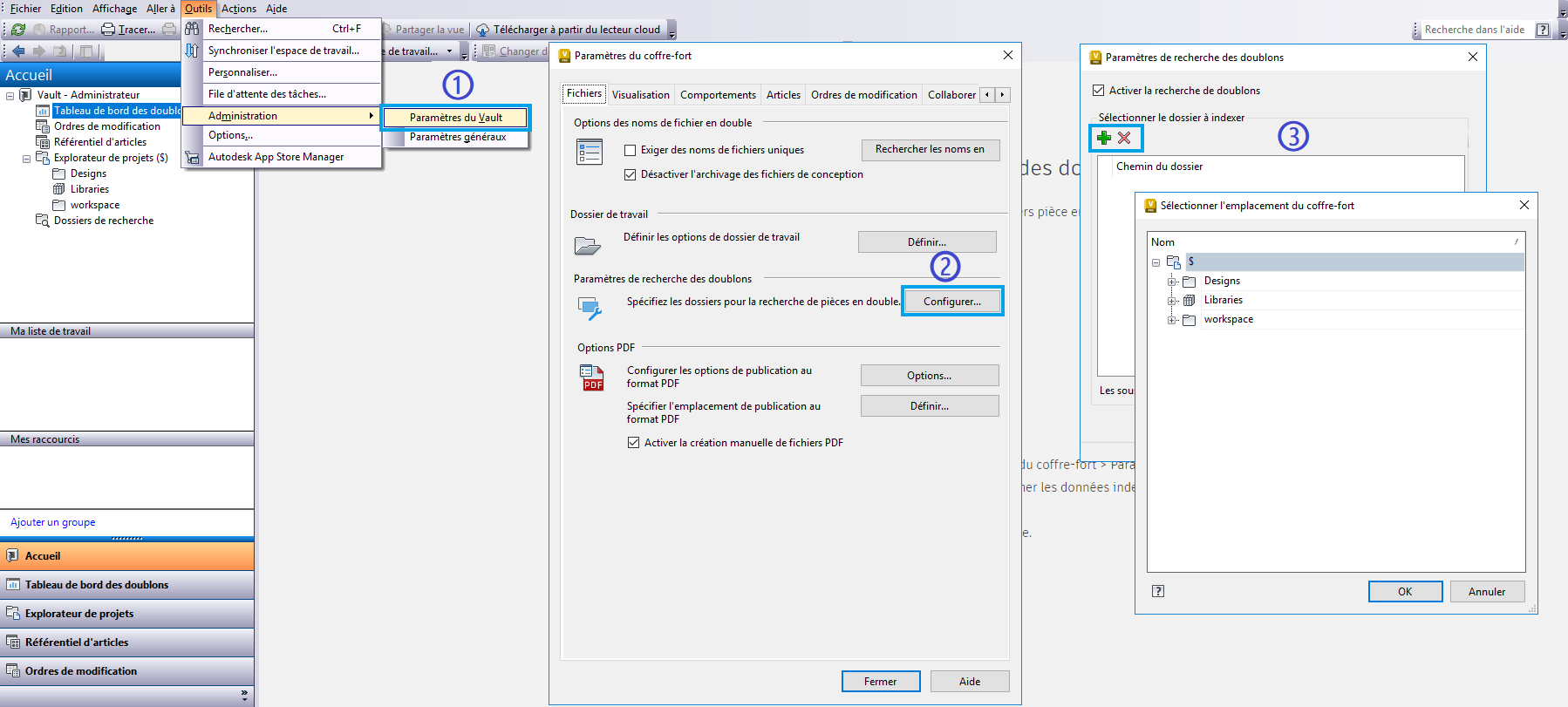 Dans la boîte de dialogue Paramètres du coffre-fort, définissez la plage de recherche. Spécifiez les dossiers dans lesquels les pièces seront indexées.