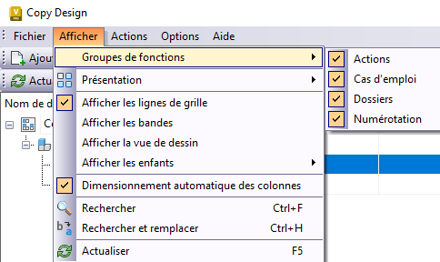 Masquer ou afficher des groupes de fonctions