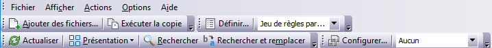 La barre d’outils se compose de cinq menus : Fichier, Affichage, Actions, Options et Aide.