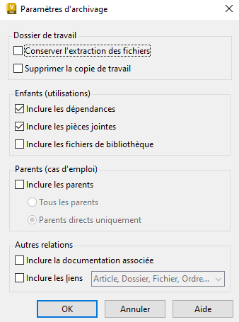Lorsque vous masquez la boîte de dialogue Archiver, vous pouvez spécifier l'incidence qu'aura l'opération du coffre-fort correspondante sur les fichiers associés.