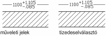 A tűrésértékek függőleges elhelyezése mellett az alsó és felső tűrésértékek vízszintes igazítását is szabályozhatja. Az alsó és felső tűrésértékek igazítását a műveleti jelek, illetve a tizedeselválasztó jelek segítségével végezheti el.