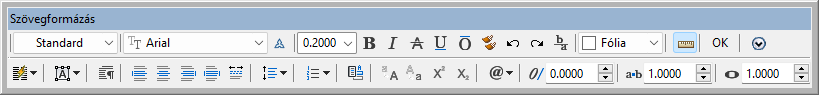 A Szövegformázás eszköztár megjelenését szabályozza. Ez a beállítás állítja be az MTEXTTOOLBAR rendszerváltozót. (Egysoros szöveg esetén nem érhető el.)