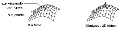 A háló egyes csomópontjait szerkeszti, amelyek M x N kiosztásként láthatók, ahol az M és N a 3DHÁLÓ parancsban megadott érték. A SURFTAB1 és a SURFTAB2 rendszerváltozó a SZABFEL, a TABFEL, a FORGFEL és az ÉLFEL parancs által használt M, illetve N értékét tárolja.