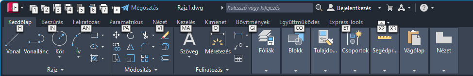 A billentyűtippek kiválasztásakor az adott eszközhöz tartozó több billentyűtipp is megjelenik. A fenti példában az Alt + H billentyűkombináció lenyomásával a Kezdőlap panel megnyílása mellett további billentyűtippek jelennek meg.