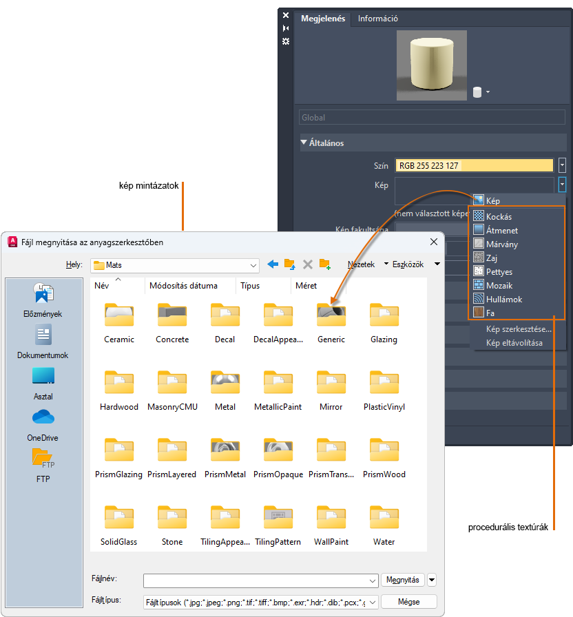 A termék tartalmaz egy képtárat, amely felhasználható a mintázatokhoz. Hozzáadhatja saját mintázatait is a következő fájltípusok használatával: