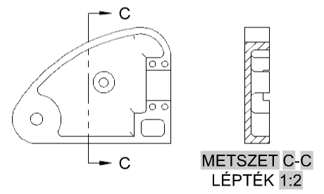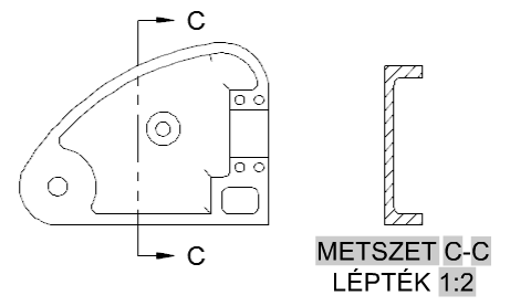 A metszetvonal és a létrejövő metszeti nézet címkéjét határozza meg.