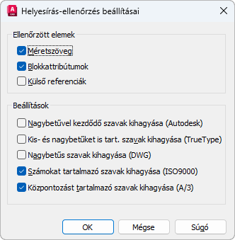 Speciális szövegopciókat ad meg, amelyeket a program a rajzban ellenőrizni fog.
