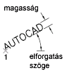 A magasság a nagybetűk bázisvonaltól mért nagysága, rajzi egységekben kifejezve. A kijelölt szövegmagasság a kezdőpont és a megadott pont közötti távolság. Ha hosszabb a karaktersorozat, a betűk keskenyebbek lesznek. A szövegmagasság állandó marad.