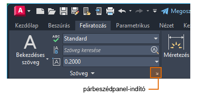 Egyes szalagpanelek hozzáférést biztosítanak a panelhez kapcsolódó párbeszédpanelhez. A kapcsolódó párbeszédpanel megjelenítéséhez kattintson a párbeszédpanel-indítóra, amelyet egy nyíl ikon jelöl (