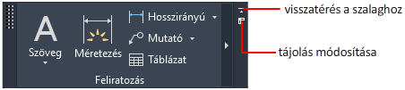 A szalagon kompakt palettán férhet hozzá minden olyan eszközhöz, amelyre egy rajz létrehozásához vagy módosításához szüksége lehet. Az alábbi helyzetekben helyezhető el: