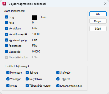 Tulajdonságmásolás beállításai párbeszédpanel