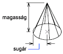 Megadja a kúp alaplapjának átmérőjét.