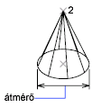 Megadja a kúp alaplapjának átmérőjét két pont megadásával.