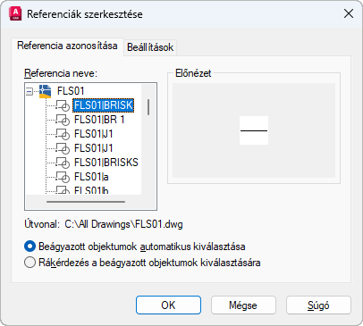 Megjeleníti a kiválasztott referenciafájl helyét. Ha nem egy blokk, akkor nem jelenik meg útvonal.