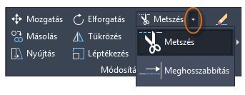 Népszerű technika, ha a PÁRH parancsot a METSZ és az ELÉR parancsokkal együtt használja. A metszés és a meghosszabbítás a leggyakrabban használt műveletek közé tartoznak. Kattintson a METSZ vagy az ELÉR eszközre, vagy írja be a ME (METSZ) vagy az EL (ELÉR) karaktereket a parancsablakba.