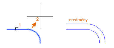 Jelölje ki az objektumot (1), adja meg az eltolás távolságát, majd kattintson annak jelzéséhez, hogy az eredeti melyik oldalára szeretné helyezni az eredményt (2). Itt láthatja egy vonallánc eltolásának példáját.
