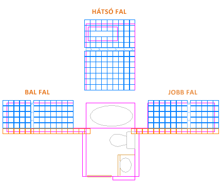 A következő ábra egy csempe projektből származik. A fürdőszoba falai ki vannak terítve, hogy elrendezhesse a csempe mintát, és megbecsülhesse a szükséges csempék számát.
