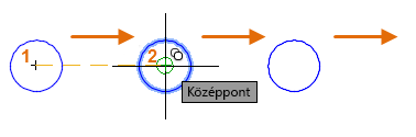 Ezután a középpont tárgyraszter használatával kattintson az 1. kör középpontjára, majd a 2. kör középpontjára és így tovább.