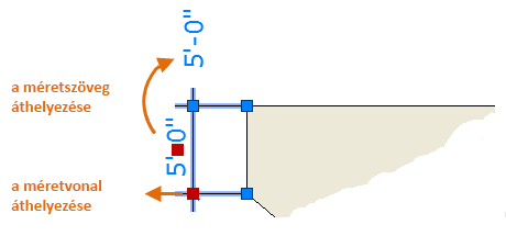 Ebben a példában válassza ki a méretet fogóinak megjelenítéséhez. Következő lépésként kattintson a méretszöveg fogójára, és húzza új helyre, vagy kattintson a méretvonal valamelyik végén megjelenő fogóra, és húzza a méretvonalat.