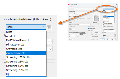 A nyomtatásistílus-táblázat információkat biztosít a színek feldolgozásáról. A monitoron szépen megjelenő színek nem feltétlenül megfelelőek egy PDF-fájlhoz vagy nyomtatáshoz. Például létrehozhatja a rajzot színesen, de a kimenetet beállíthatja monokrómra. A következő módon adhatja meg a monokróm kimenetet: