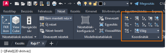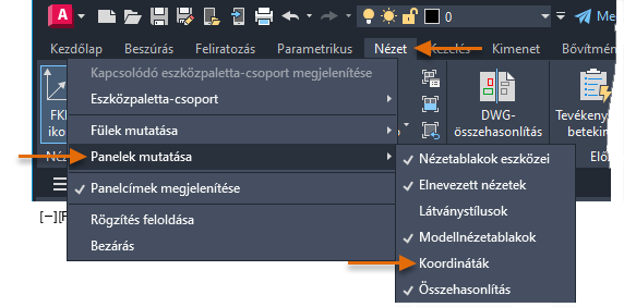 A menüben a Koordináták lap elé egy pipa kerül, a Koordináták panel pedig megjelenik a Nézet lapon.