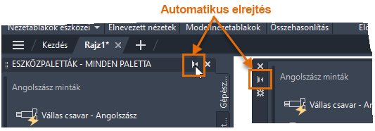 5. Kattintson az egyik palettán az Automatikus elrejtés gombra a megjelenítési állapotának összezárásához.