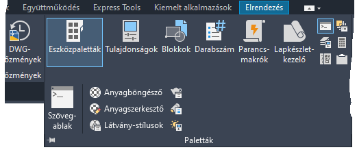 Ekkor megjelenik az Eszközpaletták ablak az AutoCAD felhasználói felületén.