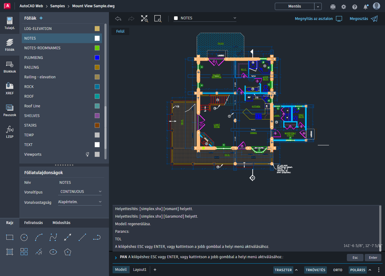 Rajzok megnyitása és használata az AutoCAD webes alkalmazásban