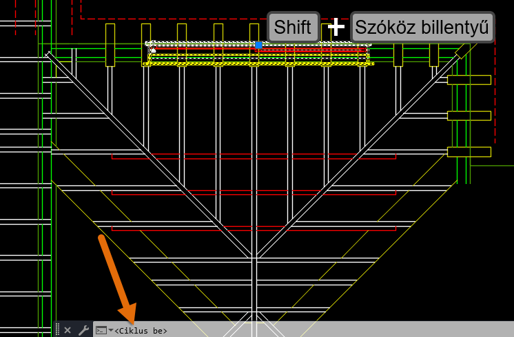 Abból tudhatja, hogy ciklikus kiválasztás módban van, ha a halmozott objektumok kiválasztása után a parancsablakban megjelenik a <Ciklus be> felirat.