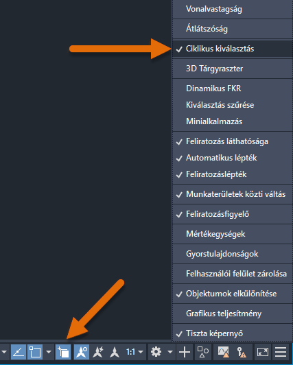Az AutoCAD rendelkezik egy ciklikus kiválasztás nevű funkcióval. Ez egyike a régóta elérhető funkcióknak, de a legtöbb ügyfél ritkán használja őket. A ciklikus kiválasztással kiválaszthatók az egymás felett található objektumok.