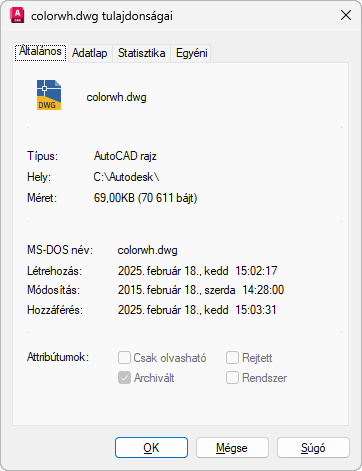 Az operációs rendszerből származó, csak olvasható információt jelenít meg a rajzfájlról.