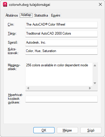 Adatlap (Rajz tulajdonságai párbeszédpanel)