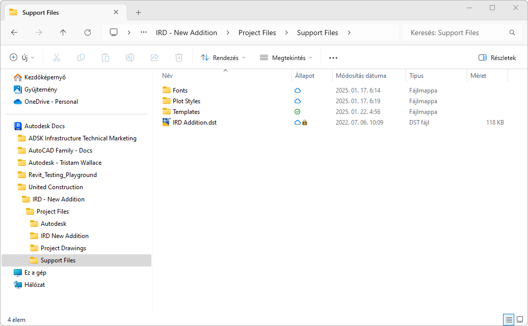 A helyi mappákhoz hozzáadott támogatási fájlokat a program szinkronizálja az Autodesk Docsszal a Desktop Connector használatával.