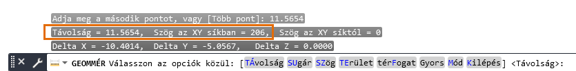 A méretek a parancsablakban jelennek meg. Ha szükséges, nyomja le az F2 billentyűt a parancsablak kibontásához.
