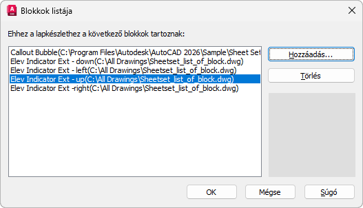 Megjeleníti az aktuális lapkészlettel használható blokkok listáját.