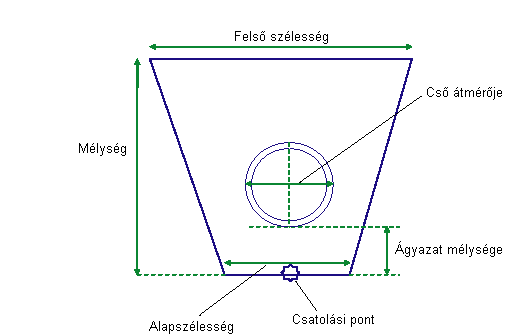 | Ágyazat mélysége | A csővezeték ágyazatának árokfenék feletti vastagsága | Numerikus, pozitív |